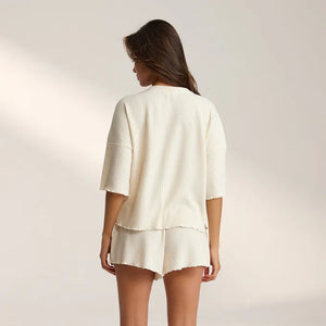 Yes. The waffle-textured fabric is soft, breathable, and lightweight.